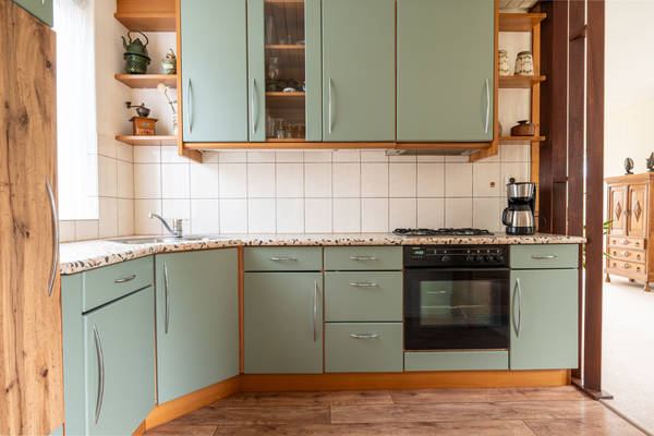 Indeling: Entree, hal en meterkast, toilet, woonkamer met vrij uitzicht, open keuken met deur die toegang biedt tot de bijkeuken.